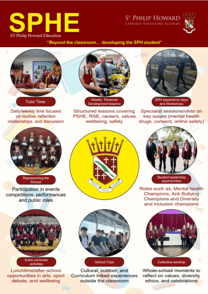 SPHE – St Philip Howard Education, is the umbrella under which we deliver our whole-school commitment to developing well-rounded, confident, compassionate young people who live out our Catholic values in modern British society.